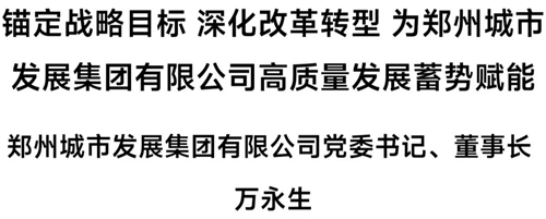 下面,為您推出鄭州城市發(fā)展集團(tuán)有限公司黨委書記、董事長(zhǎng)萬(wàn)永生署名文章《錨定戰(zhàn)略目標(biāo) 深化改革轉(zhuǎn)型 為鄭州城市發(fā)展集團(tuán)有限公司高質(zhì)量發(fā)展蓄勢(shì)賦能》——