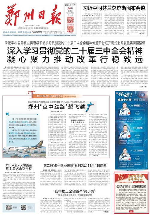 黨的二十屆三中全會(huì)提出,高質(zhì)量發(fā)展是全面建設(shè)社會(huì)主義現(xiàn)代化國(guó)家的首要任務(wù)。當(dāng)前,鄭州正錨定高質(zhì)量發(fā)展這一首要任務(wù),因地制宜發(fā)展新質(zhì)生產(chǎn)力,加快構(gòu)建現(xiàn)代化產(chǎn)業(yè)體系。