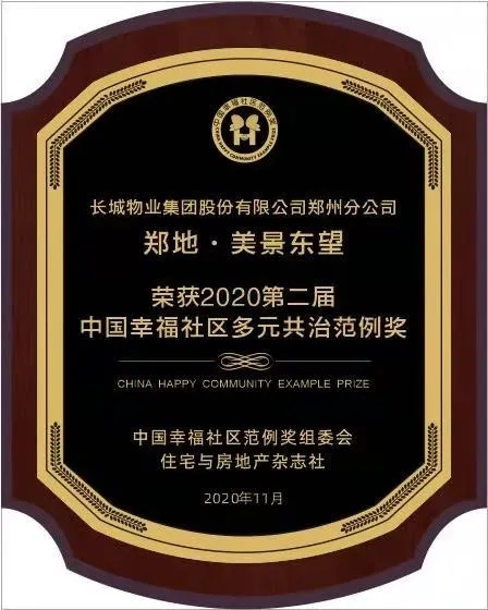 鄭地·美景東望榮獲“2020第二屆中國(guó)幸福社區(qū)多元共治范例獎(jiǎng)”