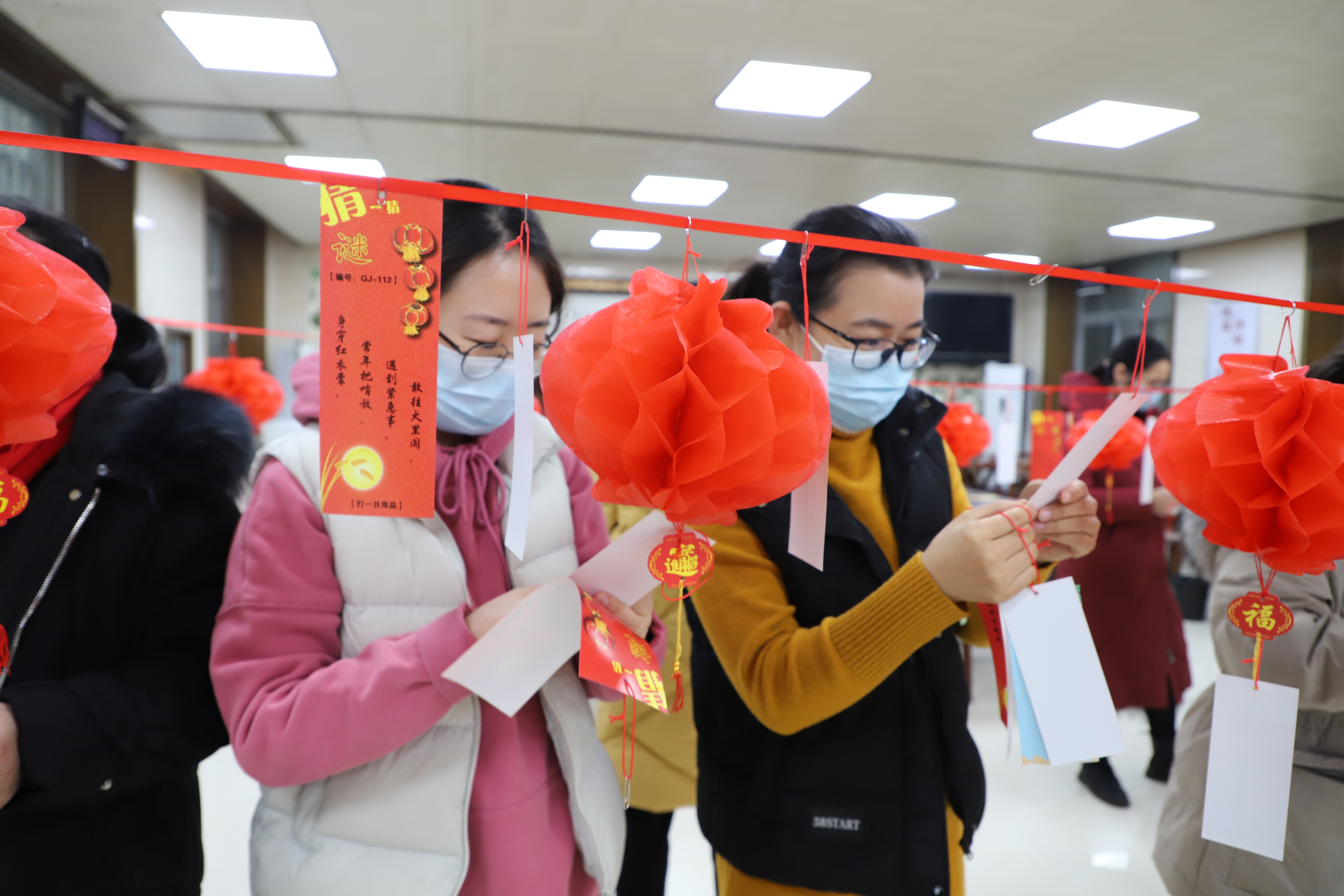 食堂內(nèi)部,工作人員在充分做好防疫工作的基礎(chǔ)上,提前將二百余條顏色不一的謎語條高高掛起。謎語有猜成語的,有猜動物花鳥的,有猜歇后語的,有猜日常用品的,生動而活潑、面廣而量大。在益智填趣、娛樂生活的同時,更以這種傳統(tǒng)高雅的文藝形式展示了一方水土歷史、人文、民俗之特色與魅力,集趣味性、知識性于一體,讓大家樂中有學(xué),共同領(lǐng)略祖國語言的無窮奧妙?;顒蝇F(xiàn)場,還為大家精心準(zhǔn)備了春節(jié)相關(guān)的禮品,極大激起了參與職工的興趣。